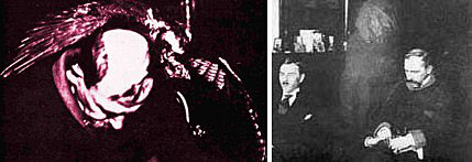 Selon Price (à gauche) Rudi Schneider devint le médium le plus convaincant que l’on ait vu jusqu’alors. Après 1932, pourtant, ses pouvoirs s’affaiblirent. Eva C (médium téléplaste) produisant une figure ectoplasmique. Le Dr Gustave Geley
